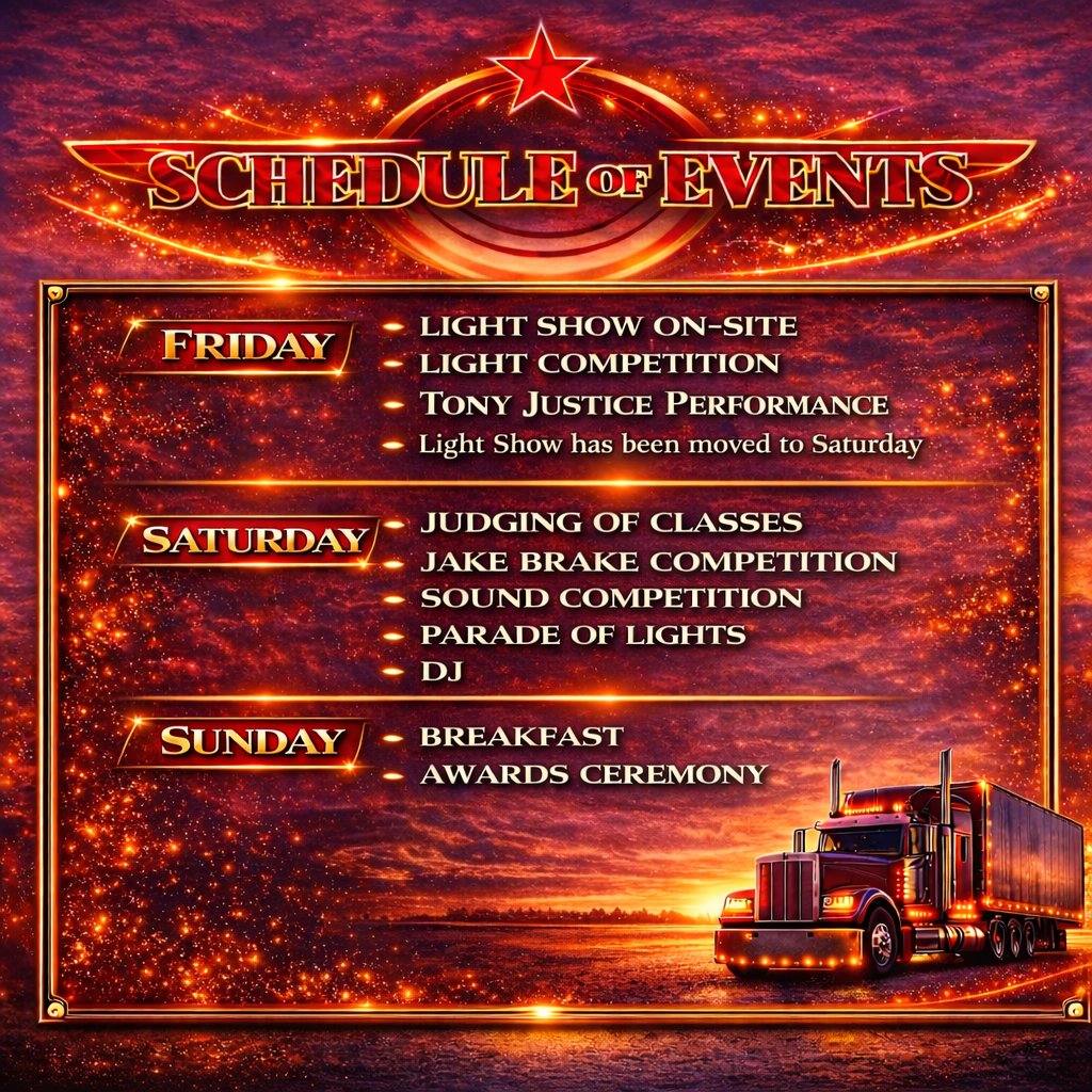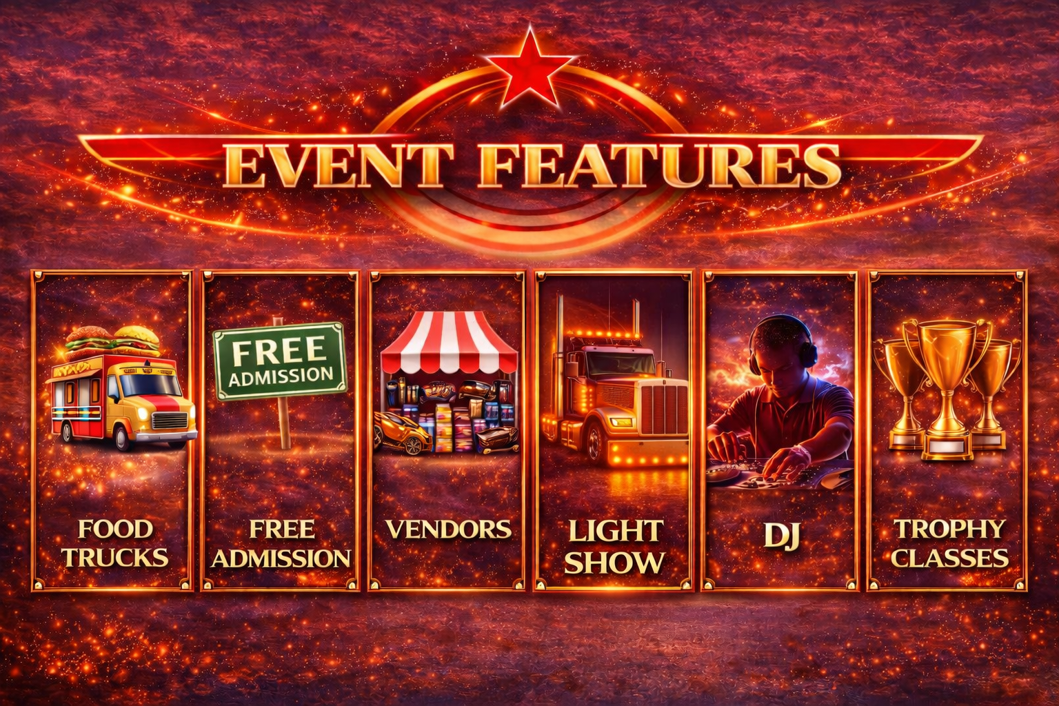 Hosted by Large Car Takeover Company, a 501(c)(3) non-profit. The event celebrates the hard-working men and women of the trucking industry while raising funds to support local charitable causes and keep the show going year after year.
